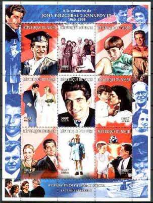 Niger Republic 1999 J F Kennedy Jnr perf sheetlet containing complete set of 9 values unmounted mint