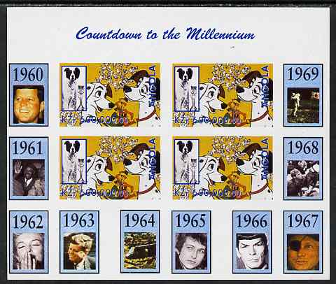 Angola 1999 Countdown to the Millennium #07 (1960-1969) imperf sheetlet containing 4 values featuring Scene from 101 Dalmations unmounted mint. Note this item is privately produced and is offered purely on its thematic appeal