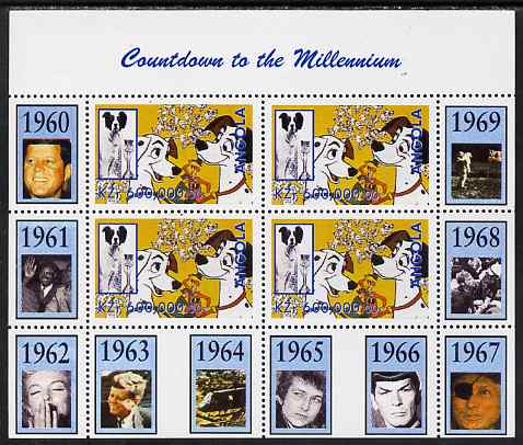 Angola 1999 Countdown to the Millennium #07 (1960-1969) perf sheetlet containing 4 values featuring Scene from 101 Dalmations unmounted mint. Note this item is privately produced and is offered purely on its thematic appeal