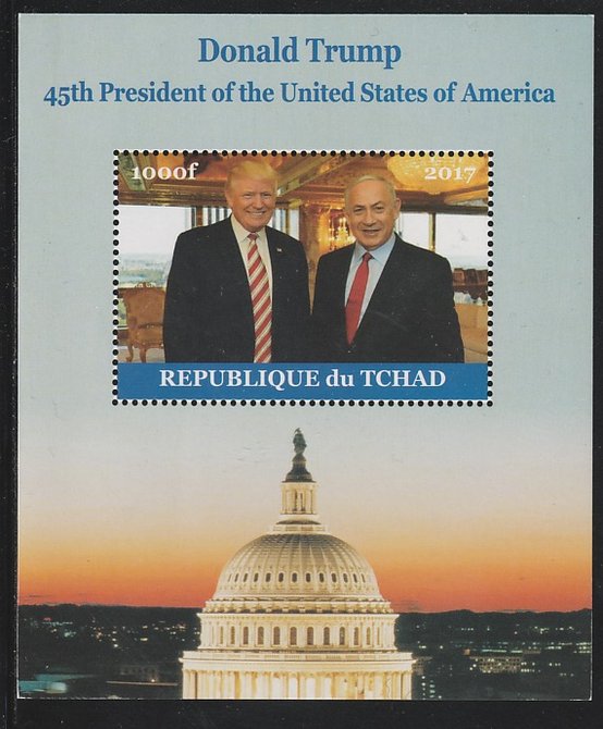 Chad 2017 Donald Trump #2 (with B Netanyahu) perf s/sheet containing 1 value unmounted mint. Note this item is privately produced and is offered purely on its thematic appeal. .