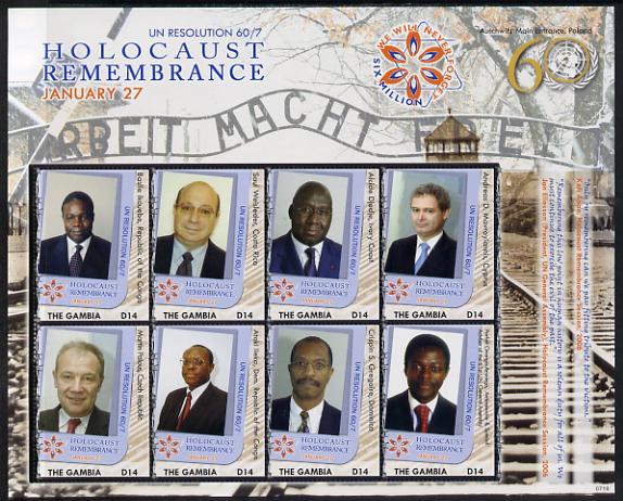 Gambia 2007 Holocaust Remembrance #3 perf sheetlet containing 8 values unmounted mint, SG 5125-32