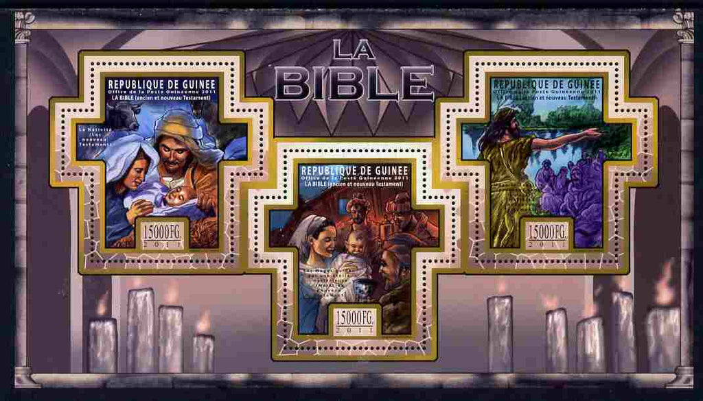 Guinea - Conakry 2011 The Bible #4 perf sheetlet containing 3 Cross shaped values unmounted mint Michel 8502-04