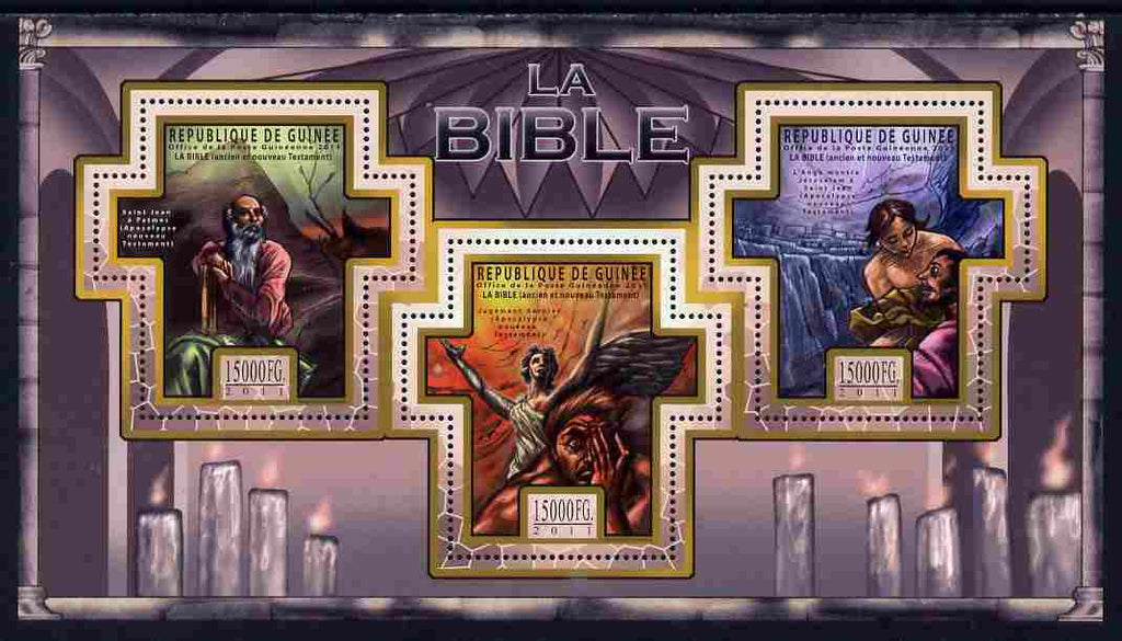 Guinea - Conakry 2011 The Bible #5 perf sheetlet containing 3 Cross shaped values unmounted mint Michel 8514-16