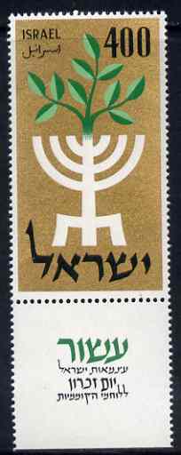 Israel 1958 Tenth Anniversary of Independence (Menora & Olive Branch) unmounted mint with tab, SG 147