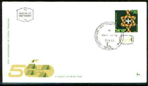 Israel 1968 50th Anniversary of Jewish Scout Movement 30a with tab on illustrated cover with first day cancel