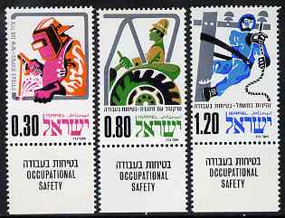 Israel 1975 Occupational Safety perf set of 3 unmounted mint with tabs, SG 592-4
