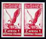 Italian East Africa 1938 Eagle & Lion of Judah 2L imperf pair being a 'Hialeah' forgery on gummed paper (as SG 15)