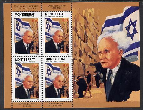 Montserrat 1998 Famous People of the 20th Century - David Ben Gurion (Israel) perf sheetlet containing 4 vals unmounted mint as SG 1068a