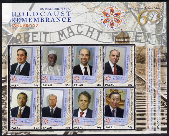 Palau 2007 Holocaust Remembrance perf sheetlet containing 8 values unmounted mint, SG MS 2320