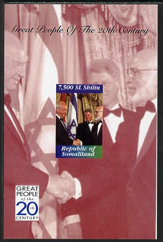 Somaliland 1999 Great People of the 20th Century - Bill Clinton, Rabin & King Husseain imperf souvenir sheet unmounted mint. Note this item is privately produced and is offered purely on its thematic appeal