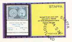 Staffa 1974 Early Coin Stamps of Israel imperf souvenir sheet #3 (75p value containing 1000m stamp) cto used