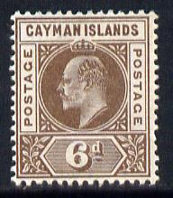 Cayman Islands 1901-03 KE7 Crown CA 6d brown mounted mint SG 6