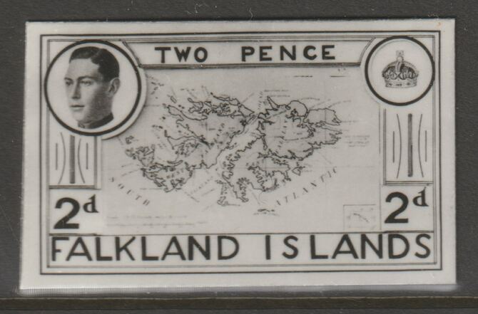 Falkland Islands 1936 KE8 2d Map of the Islands stamp-sized B&W photographic essay showing three-quarter portrait of Edward 8th, unissed due to abdication
