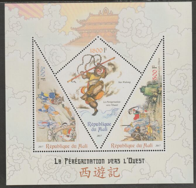 Mali 2017 Chinese Literature - Journey to the West perf sheet containing three shaped values unmounted mint