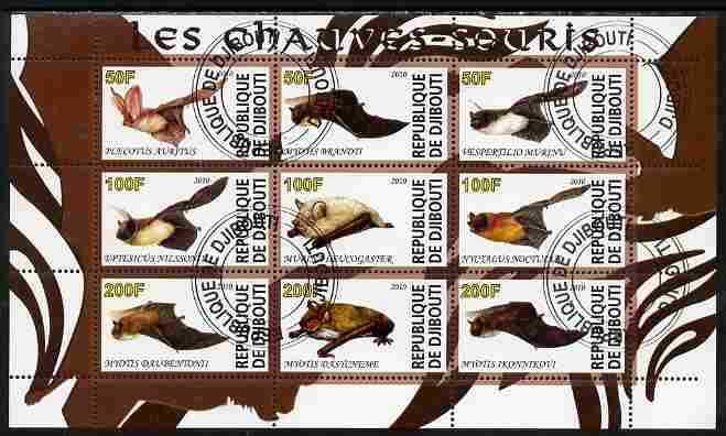 Djibouti 2010 Bats perf sheetlet containing 9 values fine cto used