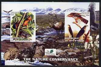 Ivory Coast 2003 The Nature Conservancy imperf m/sheet containing 2 x 500f values (mammals & birds by John Audubon) unmounted mint
