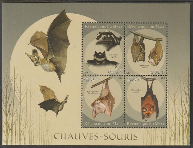 Mali 2015 Bats perf sheet containing four values unmounted mint