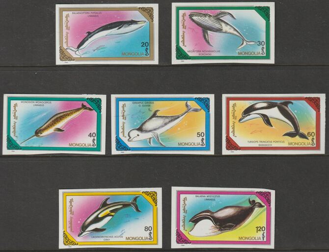 Mongolia 1990 Marine Mammals imperf set of 7 values unmounted mint SG 2113-19