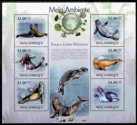 Mozambique 2010 The Environment - Seals & Sea Lions large perf sheetlet containing 6 vaues unmounted mint Michel 3602-07