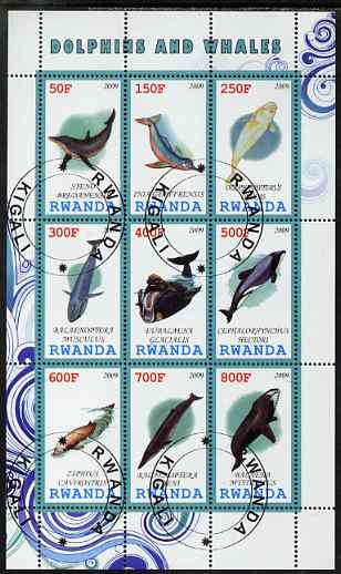 Rwanda 2009 Whales & Dolphins perf sheetlet containing 9 values fine cto used
