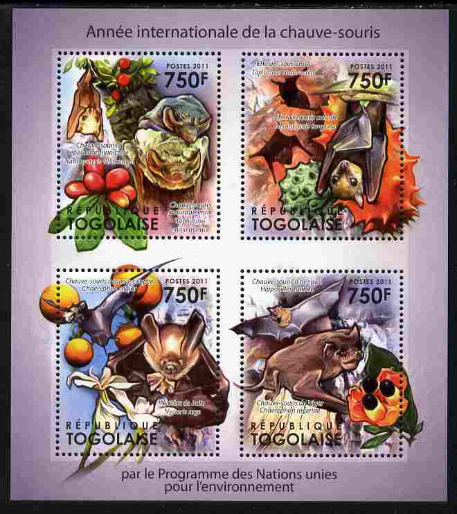 Togo 2011 International Year of Bats perf sheetlet containing 4 values unmounted mint