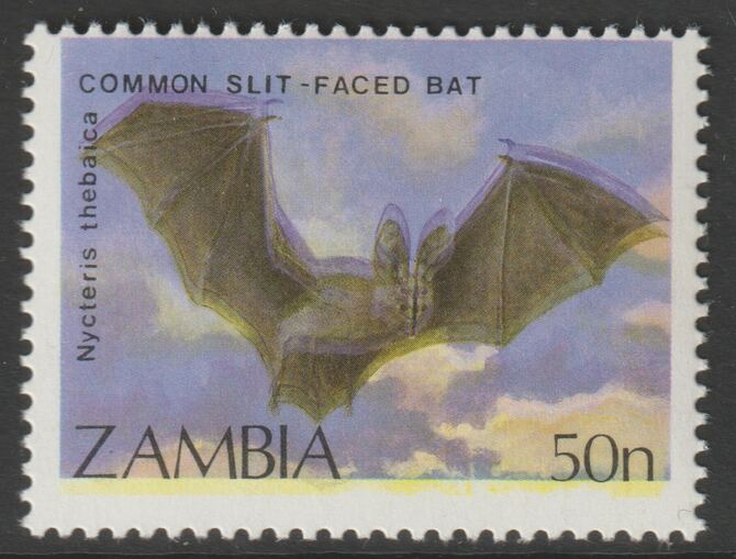 Zambia 1989 Slit-faced Bat 50n with superb misplacement of black & yellow,unmounted mint SG 571
