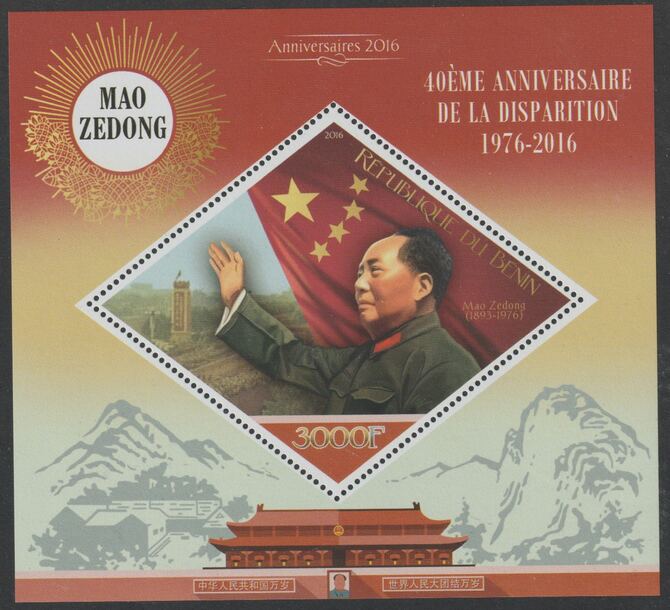 Benin 2016 Mao Zedong perf m/sheet containing one diamond shaped value unmounted mint