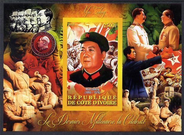 Ivory Coast 2012 Personalities of the Last Millennium #10 imperf sheetlet containing 1 value unmounted mint (Mao Tse-tung)