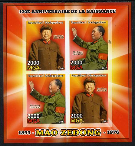 Madagascar 2013 Mao Tse-Tung imperf sheetlet containing 4 values unmounted mint