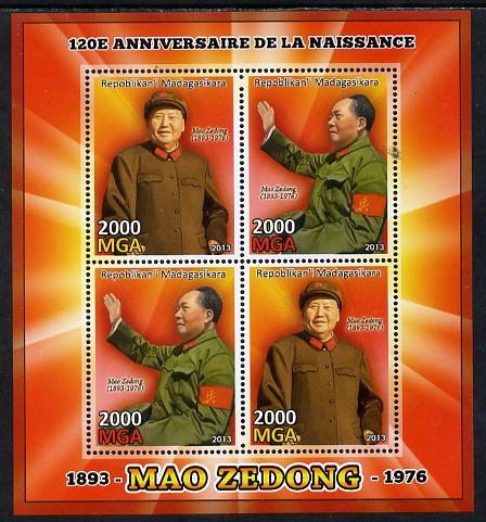 Madagascar 2013 Mao Tse-Tung perf sheetlet containing 4 values unmounted mint