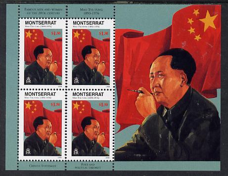 Montserrat 1998 Famous People of the 20th Century - Mao Tse-tung (China) perf sheetlet containing 4 vals unmounted mint as SG 1075a
