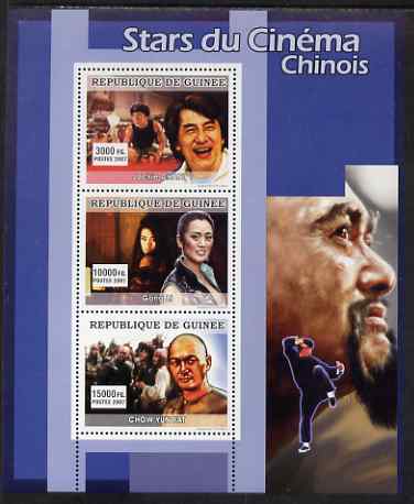 Guinea - Conakry 2007 Chinese Film Stars perf sheetlet containing 3 values (Jackie Chan, Gong Li, Chow Yun Fat) unmounted mint