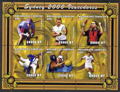 Mozambique 2001 Sydney Olympics perf sheetlet #4 containing 6 values unmounted mint, (Cycling, Judo, Table Tennis, Tennis, Water Polo & Football) Mi 1912-17