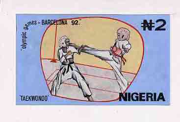 Nigeria 1992 Barcelona Olympic Games (1st issue) - original hand-painted artwork for N2 value (Taekwondo) by NSP&MCo Staff Artist Clement O Ogbebor, on card 9"x5"