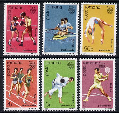 Rumania 1988 Olympic Games set of 6 (Gymnastics, Boxing, Tennis, Judo, Running, Rowing) unmounted mint Mi 4458-63