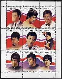 Tanzania 1992 Entertainers - Bruce Lee perf sheetlet containing 9 x 75s values unmounted mint, SG 1099a