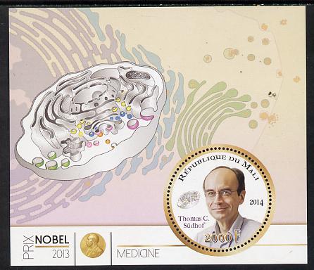 Mali 2014 Nobel Prize for Medicine (2013) - Thomas C Sudhof perf s/sheet containing one circular value unmounted mint