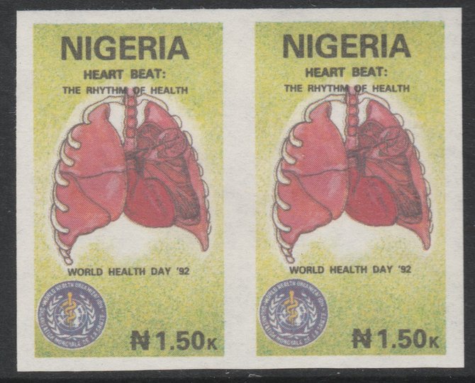 Nigeria 1992 World Health Day (Heart) 1n50 imperf pair unmounted mint as SG 627