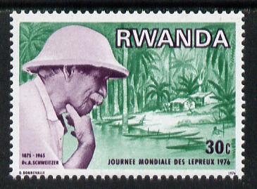 Rwanda 1976 Albert Schweitzer in pith helment 30c from World Leprosy set unmounted mint, SG 720*