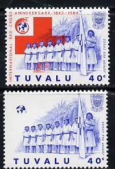 Tuvalu 1988 Red Cross 40c unmounted mint with red omitted (SG 519var) plus normal (spectacular)
