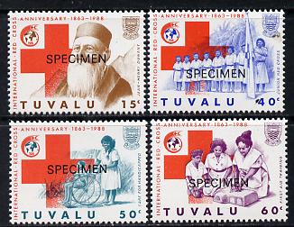 Tuvalu 1988 Red Cross set of 4 overprinted SPECIMEN (as SG 518-21) unmounted mint*