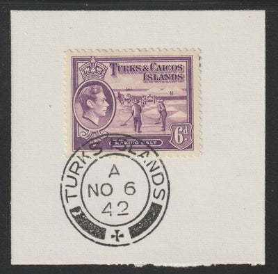 Turks & Caicos Islands 1938 KG6 Raking Salt 6d,mauve,SG 201 on piece with full strike of Madame Joseph forged postmark type 427 £10.50