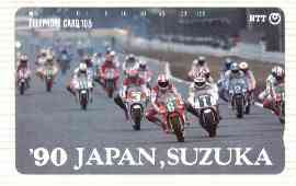 Telephone Card - Japan 105 units phone card showing Field of Riders inscribed '90 Japan, Suzuka (card number 290-433)