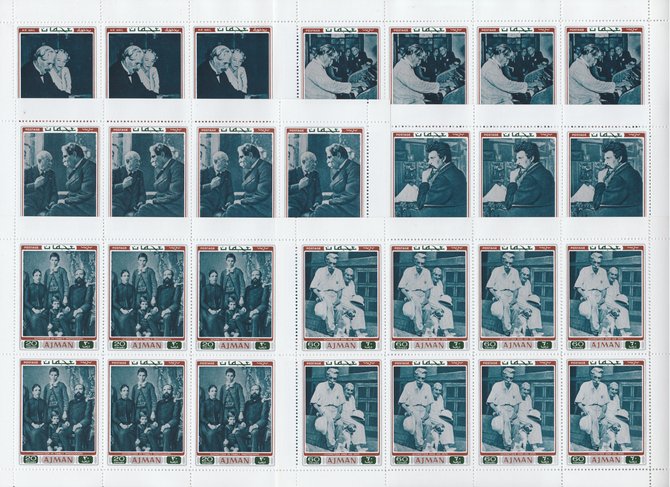 Ajman 1971 Albert Schweitzer perf set of 6 (Mi 801-806A) each in complete sheets of 8 unmounted mint