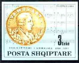 Albania 1991 Death Bicentenary of Mozart unmounted mint imperf m/sheet, SG MS 2502, Mi BL94