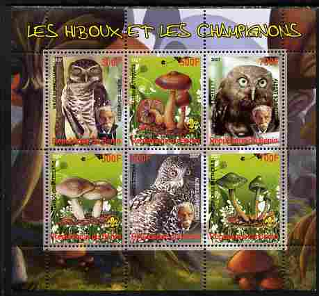 Benin 2007 Owls & Fungi (with Albert Schweitzer) perf sheetlet containing 6 values unmounted mint. Note this item is privately produced and is offered purely on its thematic appeal