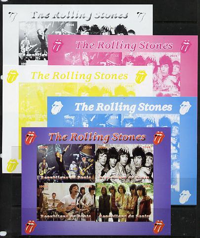 Benin 2014 The Rolling Stones sheetlet containing 4 values - the set of 5 imperf progressive proofs comprising the 4 individual colours plus all 4-colour composite, unmounted mint