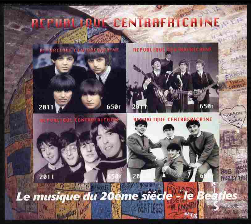 Central African Republic 2011 The Beatles #2 imperf sheetlet containing 4 values unmounted mint. Note this item is privately produced and is offered purely on its thematic appeal