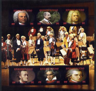 Chad 2012 Classical Composers imperf sheetlet containing 6 values unmounted mint. Note this item is privately produced and is offered purely on its thematic appeal