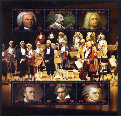 Chad 2012 Classical Composers perf sheetlet containing 6 values unmounted mint. Note this item is privately produced and is offered purely on its thematic appeal. . appeal